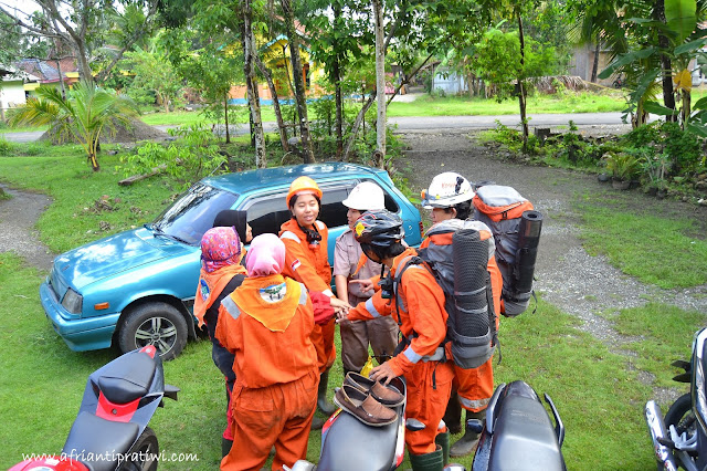 Selama setahun pertama aku berada di mapala, aku belum pernah sama sekali mencoba yang namanya caving. Pada waktu itu, alasanku tidak mau caving selalu tentang mata. Ketika ada yang mengajakku untuk susur goa, aku selalu menjawab, "Nanti aja kalo udah operasi mata, biar nggak ribet pake kacamata." Sesungguhnya ketakutanku pada waktu itu cuma satu, aku takut ketika kacamataku jatuh, aku tidak bisa melihat apapun dan malah merepotkan yang lain. Dan, karena sekarang sudah operasi mata dan tidak terlalu bergantung pada kacamata, aku sudah bisa susur goa. Yeay!
