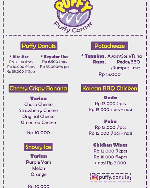 Nah, kalau kamu main ke Purwokerto, boleh banget cobain aneka menu di Puffy Corner, ya. Dijamin, kamu bakalan bahagia sesuai tagline mereka, "Bunch of Happiness". Oiya, Puffy Corner juga menerima order custom bucket donuts untuk seserahan atau bingkisan, lho. So, jangan lupa mampir!